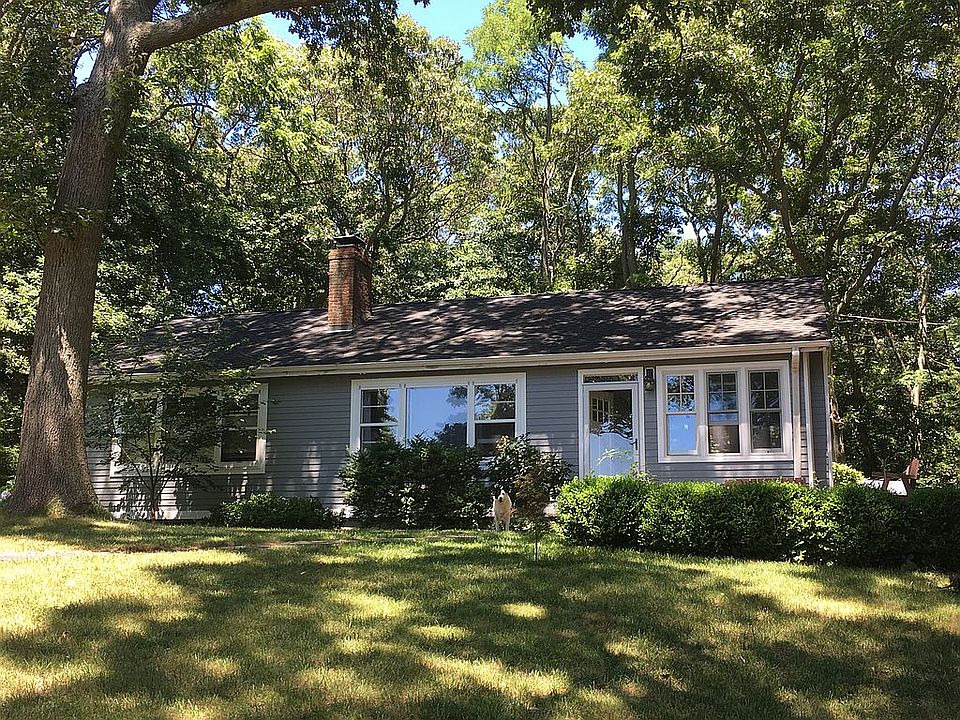 Location! Location! Location! Own your own private sanctuary on the 9th hole of a private golf course! 2BR 1 BTH ranch style house on .8 of an acre located in the very desirable Three Village School District. Stay under the new SALT $10,000 deduction limit with Very low tax of $6,800 without the star, and $5,770 with the star, which is transferable. Hardwood floors throughout, wood burning fireplace, full basement with all new windows, newly remodeled bathroom, newly renovated sunroom with Anderson windows and new cast iron heat, very efficient Biasi oil burner with 2 zone heat is 4 years old, roof is 4 years old, new siding, new plumbing, cedar lined closets, huge oversized 20x22 detached garage. House is on a flag lot and is set 250 feet back from the street. Only the kitchen remains as your portrait to be finished. New stainless steel appliances. Asking $459,000. Serious inquires only.