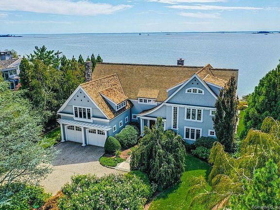 Direct Waterfront paradise overlooking the L.I.Sound, this beautifully appointed Nantucket COL represents the best of all worlds. Be it spectacular panoramic views,entertaining on prvt beach & poolside, setting sail from your prvt dock or close proximity to Metro North & I-95, this 11RM/4BR/3.2BTH home combines four season luxury w/convenience Soaring 3-story barrel ceiling,custom millwork,cathedral-height stone fplc, & deep crown moldings exemplify matchless craftsmanship found thru-out this stunning Saugatuck Shores beach property Hdwd flrs & 2-story windows accent open floor plan on MAIN Level w/water views from every room. Sun-filled LR & DR area w/interior balcony, Gourmet EIK w/state of Art Applcs open to PATIO & POOL w/Outdoor shower. Quiet DEN features mahogany blt-ins,wet bar & outdoor access. 1st flr BR w/bth makes perfect in-law or guest suite. MBR suite w/steam shower,rm-size closet w/abundant storage, jacuzzi tub & balcony deck. 2nd flr office w/commanding views of LI sound. LG Playrm w/vltd ceiling & 2 add'l BRS complete 2nd flr. 3rd flr Media RM w/half bth & wet bar creates excellent space for overflow company. This Architectural masterpiece awaits the Buyer desiring a Seaside Paradise for all family and friends to enjoy