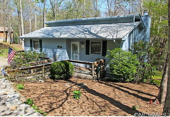 INCOME PRODUCING OR MOTHER IN LAW SUITE. Charming Cabin located in Mountain Top Subdivision with easy Paved Access at the Entrance of Maggie Valley. 2-Bedroom, 2-Bath home has an Open Floor Plan, Fireplace, Laminate Flooring, Sunroom, Outbuilding, and Kitchenette for extra Rental Income.