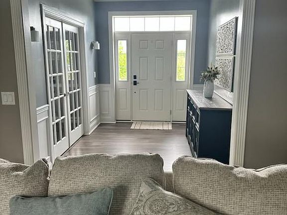 Stunning 2 story home in Victoria's Pond. This former Parade of Homes winner offers over 2700 tastefully finished sq ft with vaulted ceilings, decorative pillars and a new kitchen with granite, stainless steel appliances and impressive island. The 2 story great room with gas fireplace has lots of light and glass doors leading to the stamped concrete patio which is great for summer grilling or fun evenings around the fire pit. You will enjoy the privacy of a wooded treeline along the entire backyard of this property. The dining room has chair rail, crown molding and a tray ceiling along with double glass doors. The primary bedroom and bath are on the 1st floor featuring vaulted ceilings and glass doors leading to the patio. The bath offers a jacuzzi tub and separate shower with 2 walk in closets. A second bedroom is located on the 1st floor with a connected full bathroom. Laundry and pantry just off the kitchen for convenience. Upstairs features 2 more bedrooms and a Jack and Jill bathroom. and a walkway overlooking the great room The home has many upgrades and character. New HVAC, new water softener, new front door, luxury vinyl plank flooring, new kitchen, granite counter tops and appliances, Home has been professionally painted. This impressive home is located in Elizabethtown School District.