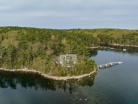 Located on 6.35+/- acres with 968+/- feet of deepwater shorefront and a Dock on Somes Sound, Westcliffe has a 5 bedroom, 7 bath main house with 7,291+/- feet of year round living space, and a 2 bedroom 2 full bath guest house with 1,984 sft of year round living space over a 4-bay garage The Main House was designed by renowned Architect Stewart Brecher, with exceptional construction details highlighting waterviews from every room. High ceilings, and full length windows surrounded by gorgeous mahogany and cherry wood throughout bring in natural light and unlimited views of Somes Sound and the mountains of Acadia. The kitchen is a chef's delight with granite countertops, an island, and stainless steel Viking multi burner gas stove with a commercial vent hood. The formal dining room and living room share a double fireplace framed by custom granite stonework. On the waterside, there is a full house length deck that wraps around from the North to the South end, offering large entertainment areas, with side porches for more privacy. Each bedroom has AC and its own full bath. The 3rd floor offers a custom Hinckley Bar and full deck area with unlimited 180 degree views from the south to the north across Somes Sound and Acadia's mountains. The Dock is well protected and fully renovated in 2018, with 3 moorings. A full house generator and security system offer added protection. ''Westcliffe'' shares grace, elegance, and privacy all together with Acadia's gift of the land, ocean, and mountains.