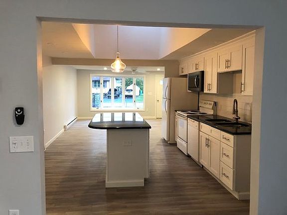 Completely remodeled 1,500 sq. ft. single family home in Groton, CT. 3 Bedrooms, 1.5 baths Open floor plan. Large new kitchen with granite countertops, large living room, large family room with wood-burning fireplace, walk-in pantry, laundry-room with hook-ups, electric heat, 2 patios and garage. Located on a corner lot. Owner pays for water and sewer usage. Tenant responsible for all other utilities, lawn care, snow and rubbish removal. No smoking allowed on premises. Small dog will be considered with a non-refundable pet deposit. Laundry hook-ups on premises for stackable washer/dryer. Credit, background check and income verification required.