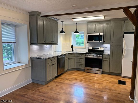 Beautifully updated 3-bedroom home nestled in the heart of desirable Lebanon Township. This spacious country retreat features a large eat-in kitchen with granite countertops, stainless steel appliances, gas range, and abundant natural light from numerous windows.The stunning cathedral-ceiling great room showcases unique exposed stone walls, a cozy fireplace with a pellet stove insert, and an additional LPG heater for comfort. Brand new carpeting has been installed, and sliding doors lead to an oversized patio, perfect for relaxing beside the gleaming in-ground pool.Enjoy outdoor living with a generous, covered side porch overlooking a picturesque yard ideal for fun and play. Inside, you'll find a newer Roman-style shower, first-floor office, washer and dryer, expansive bedrooms, and ample closet space. Additional storage available in the basement.This home is part of a 3-residence property; the landlord resides in one of the other homes. Tenant insurance is required. Please use the driveway with pillars and continue straight to the house at the end on the right. Lockbox is located on the porch at the side door.