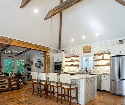 This rare find is the epitome of the Bluffton State of Mind! The home sits on nearly an acre of land & is just a golf cart ride away from all of the shops, restaurants & entertainment that Old Town Bluffton has to offer. One of Bluffton's finest builders' personal home, you will find that no detail was spared. Beautiful hardwoods throughout, custom kitchen countertops, wooden beams & more! The carriage house over the garage is perfect for guests, in-laws or renters. There are no restrictions so bring your boat, vehicles, & RV. Enjoy your very own Palmetto Wildlife Habitat, this oasis offers pond, fire pit, garden area & complete relaxation. 2022-02-24