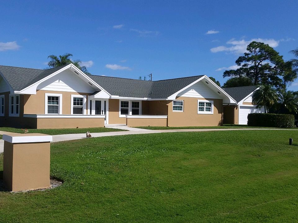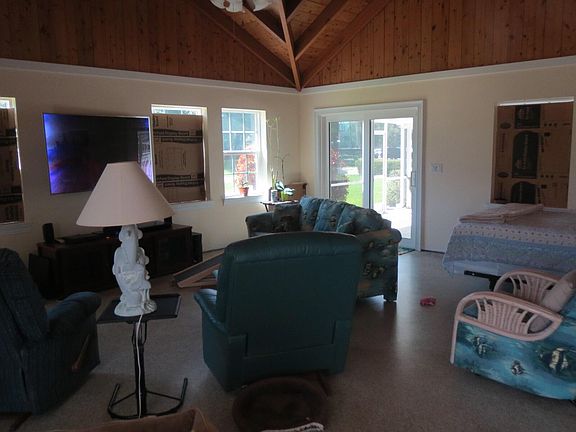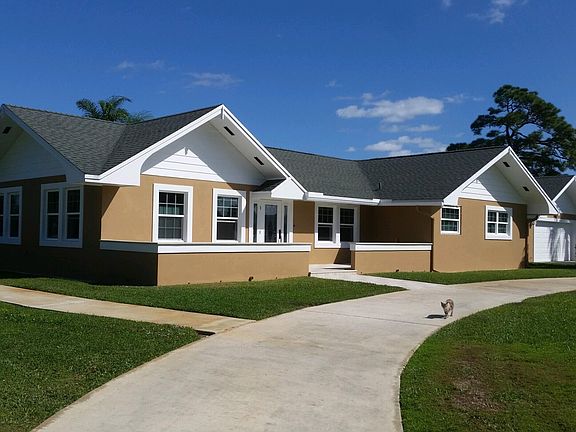 This Florida Gardens gem has a beautiful layout and just needs some updating projects finished. This home sits on .65 beautifully landscaped acres. This 3 bedroom, 2 1/2 bath home has all impact single hung windows and doors except for the door leading from the house to the garage. The a/c condenser was new in 2020 and the air handler replaced in March 2022 along with all the duct work (both supply & return) being replaced. The washer & dryer along with the hot water tank were replaced in 2016. Master bedroom & bath have been gutted and are unfinished. Florida room has one unfinished wall. This house has loads of storage. The outside has a custom run-off drainage system. This house has loads of storage. The oversized garage has a hurricane rated garage door, an enormous loft for storage and an air compressor that stays with the house. The cameras and security system stay with the house along with a 42-inch monitor. The cameras are hi def & infrared. Beautiful, oversized pool. The house does not a refrigerator and the dishwasher does not work. Florida Gardens is a desirable community with no HOA and is close to the turnpike, shopping & restaurants. Must see to appreciate all the special features this home has.