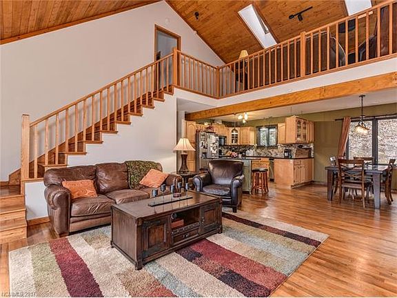 Fabulous Find in Fletcher! Beautiful 4BR/3BA move-in ready home with open floor plan. Upper level offers a private master BR, balcony and separate loft. Lower level includes bedroom, bathroom and additional living area with deck & separate entrance. Main level has a large, wrap-around deck. Private wooded lot includes storage unit and large fenced area perfect for pets or a garden. House features vaulted ceilings, fireplace, new bathroom, hot water on-demand & much more! You have to see it!