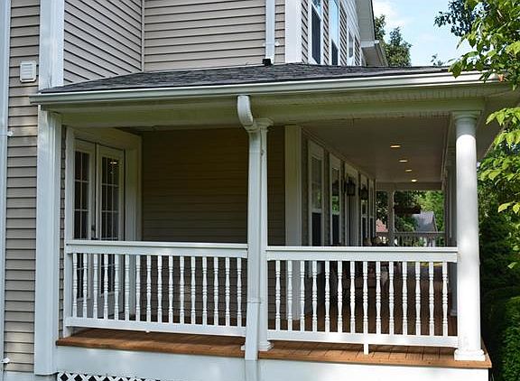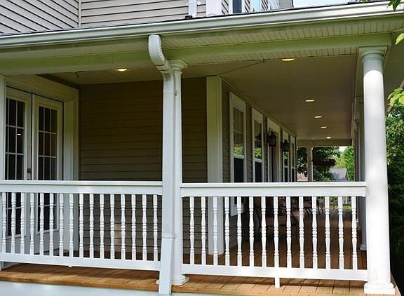Country Charm, inviting wrap around front porch this two story with gingerbread gables is nestled amount tall trees with a beautiful level front yard. For out door enthusiasts this beauty backs to woods with a covered patio of exposed aggregate underneath a large 19 x 12 deck. New landscaping wraps this lovely two story on each side and front. On the interior, the huge spacious rooms are hard to find. The main floor large living/family room with wet bar includes a door out to the wrap around porch. The stone fireplace has gas logs to enjoy on those cold winter nights. A built in bench is nestled just off the deck inside the area between the kitchen and living area. The kitchen has updated maple wood cabinetry with granite counter tops. Upstairs you''ll find three large spacious bedrooms, laundry room and a master bath that is 13x17 with a whirlpool tub and separate shower. The lower level family room and 4th bedroom and a full bath, a great space for guests or that teenager!