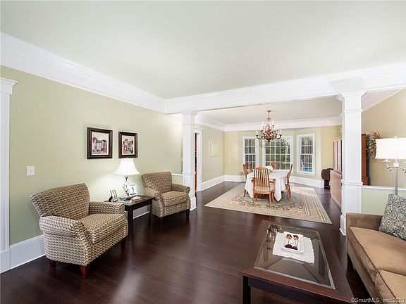 Outstanding newer home set beautifully on a private drive at the end of a cul-de-sac! This custom-built 2005 home on 3.7ac offers 3704sf, 4 bed/3.5 baths with amazing pride of ownership, attention to detail, craftsmanship woodwork, trim & moldings. Top of the line features begin when you enter the 2-story foyer with custom wainscoating, the office to the left offers French doors and built-in cabinets & to the right is the living room which opens to the dining room. The gourmet kitchen with custom cherry cabinets is a chef's dream which offers granite and corian countertops, stainless steel appliances including a tri-vection/convection built-in double oven, the 10 center island offers refrigerator draws. The cooktop is gas with 5 burners. The kitchen opens into a spacious family room with a gas fireplace, built-in cabinetry, surround sound system & speakers. The open first floor plan offers hardwood throughout, 9 ceilings, and crown molding in every room. A gracious staircase takes you to the 2nd floor with a beautiful master en-suite, a large walk-in closet, master bath offers double sinks, a walk-in tile shower and a jetted tub with double windows for a bright area. Three other bedrooms include one with a full bath and two with built-ins. The 3rd full bath & laundry room complete the second floor. The basement is partly finished with extensive space for storage & organizing. There's a lovely private backyard to enjoy serene moments, a pool for summer fun & cool down. Location-location-location, convenient to I84 & 691 highways. Cheshire schools & parks offers best experiences, Blue Ribbon Awards, Rails to Trail parks.