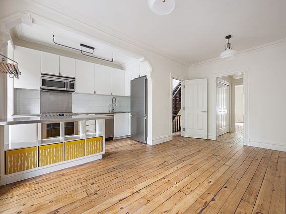 Enjoy a true floor-through layout with refined separations between bedrooms and common areasideal for loft-style living or quiet retreat. Expansive walk-in closets provide rare Brooklyn storage. The open living and dining spaces retain rich period details; exposed brick, ornamental fireplaces, tin ceilings, and wainscoting reflect the building's 19th-century heritage.