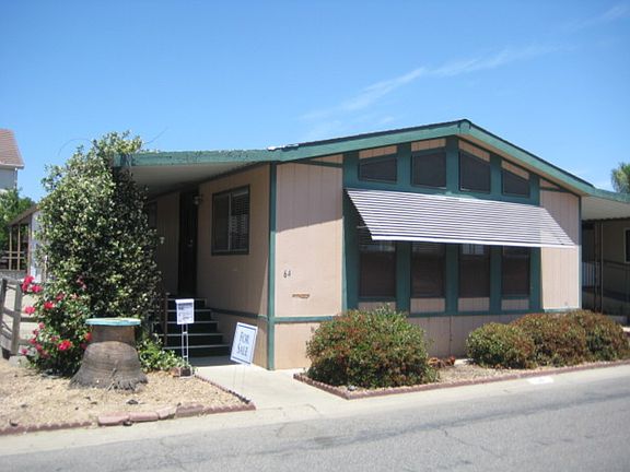 64 CLipper Lane, Modesto California This is a Resort Styled Mobile Home Age Qualified Community (Age 55+). We have Tree Lined Streets, within walking distance of a Wal-Mart Super Store, a Pekos (Family)Restaurant, and Regal Movie Theater. Some of our Community Features include aHeated Pool and Spa, Billiard Room, Club House, Library, Wood Shop & TennisCourt. These homes are available for sale only if they are to remain in the park, starting site rent will be $599 per month and charges $30.94 per month for Water, Sewer and Storm Drain; this also includes trash pickup once a week. Call 209-577-3981 Monday thru Friday 9am to 4pm for more information. We may be available to show homes during evening and at times on the weekend, just call today and we will do our best to find a good time for you to see one of best places to livein the CENTRAL VALLEY.