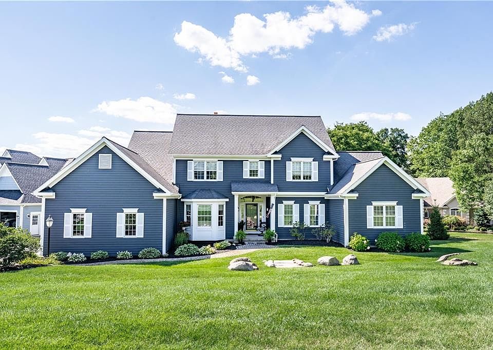 Make this breathtaking Cobblestone Creek Country Club view your own. Wake up every morning and enjoy the peaceful setting of your private 1st floor master suite balcony. Entertain family and friends in your open kitchen and deck with a stunning view overlooking the 11th fairway. Offer guests a private retreat in your fully finished basement featuring a large bedroom, full bath and walk-out lower-level deck where they can enjoy an exquisite sunset view. Updates include new hardwood floors throughout 1st and 2nd floors, master suite expansion with over-sized custom walk-in California Closet, Viking gas range with hood & custom tile work, UV-film protected windows, custom fireplace mantles (master suite & living room), custom built-in entertainment center in basement, finished garage floors & walls, re-designed landscaping, professional interior & exterior painting of entire home, new deck awning 2019, furnace 2019, water heater 2017. Bonus feature - a 12-zone sprinkler system to keep your landscaping pristine. Take advantage of this prime location. Walking distance from Cobblestone Creek Clubhouse, 5 minutes from Eastview Mall, 490 and Thruway.