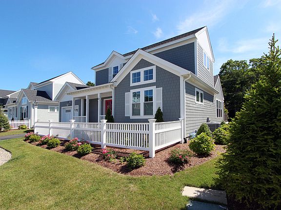 Welcome to 64 Cobblestone Cr., located in Ockway Village, New Seabury's newest gated community. Recently built, this Gardenia model is a highly sought after floor plan. With its modern design, this home boasts 3 bedrooms, 2.5 bathrooms, & over 2,100 sq.feet of living space. Upon entering you will find soaring ceilings, beautiful hardwood floors & an open floor plan. The oversized 1st floor primary suite includes 2 walk in closets, a large full bath with double vanity, glass shower & tub. An elegant kitchen with dining area opens to a bright and airy living space. The spacious living room features a cathedral ceiling, gas fireplace and sliders to your private deck. A powder room & laundry room, complete the 1st floor. On the 2nd floor you will find 2 guest bedrooms & a full bath. Additionally, this home includes an attached one-car garage & front porch.Just steps from your front door is the private community pool. Maintenance free materials, upgraded features, create a turnkey home ready for you to enjoy all New Seabury has to offer. Club memberships are still available with golf, private beach, pools & athletic center, all just a short distance from this remarkable home.
