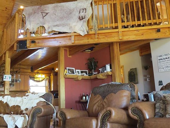 This is an extremely well made custom log home on 26 irrigated acres that is perfect for anyone with some 4 legged friends. Inside there is a large vaulted Great Room with an abundance of natural light that opens onto the chef's dream kitchen, with granite counter tops and hickory cabinets. On the main floor is a huge Master Suite with custom double shower head tile shower. Outside there is a 30'x45' shop with plenty of parking for 4 cars, a 36'x48' barn with double roll up doors, and a heated tack room.