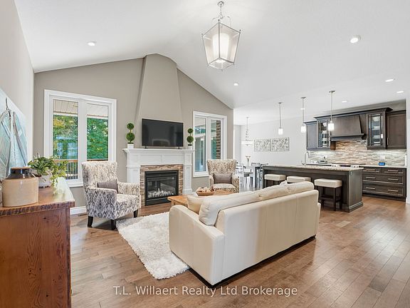 Welcome to 64 Colin Avenue a Hayhoe-built home showcasing quality craftsmanship and thoughtful design throughout. With 1,500 sq. ft. on the main floor plus a fully finished 1,200 sq. ft. walk-out basement, this 2+2 bedroom, 3-bathroom residence offers an ideal blend of elegance, comfort, and functionality. Set on the subdivisions premier lot, backing onto a serene woodlot, this home delivers both privacy and a picturesque setting. Inside, youll find soaring 9' ceilings on the main level and a cathedral ceiling in the great room, highlighted by hardwood flooring and a cozy gas fireplace. The primary bedroom features a walk-in closet and a private 3-piece ensuite, offering a comfortable retreat. The kitchen is a true showpiece with granite countertops on the island, quartz surfaces on the perimeter (and bathrooms), a walk-in pantry, and a design that's as stylish as it is practical. The walk-out basement expands your living space with a welcoming rec room featuring a second gas fireplace, two additional bedrooms, a full bathroom with jetted tub, a wet bar with beverage centre, and a versatile area currently used as a billiards room with walk-out access to the patio perfect for entertaining or easily adaptable to suit your needs. With a long list of upgrades and a prime location, 64 Colin Avenue offers a rare opportunity to enjoy refined living in a natural setting.