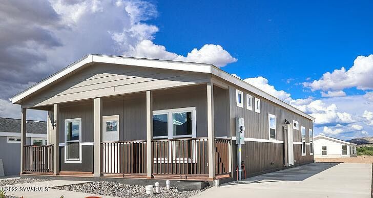 This New beautiful home is a limited edition with a front porch. Built to exceed HUD standards with high efficiency and tasteful colors and finishes. The three-bedroom two bath is designed to feel large and open and still be cozy and efficient to maintain. The Refrigerator, Dish Washer, Range and Microwave are upgraded Stainless Steel. All owners have full access to all the Estates amenities including the pool and hot tub. Your safety is paramount with every resident is required to pass a background check. Listing price includes sales tax. Land lease is 535.50 month with tax. Staff can quote price for optional coved car port and help with contractors to build a back yard fence.