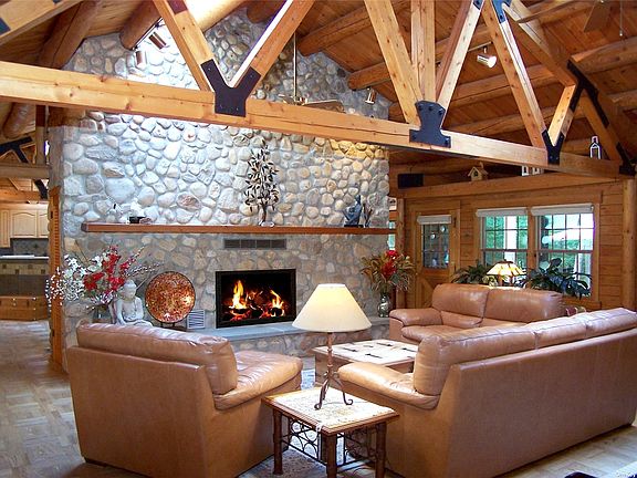Don't Miss This Once In A Lifetime Opportunity! Amazing One Of A Kind Genuine Log Cabin Set Back 300ft. As you walk in the front door, you are welcomed by large windows, hardwood floors throughout, vaulted ceilings, fireplace,central air, central vacuum & filtration system. This home offers a full basement with outside entrance. All the amenities you need for a work at home Staycation!