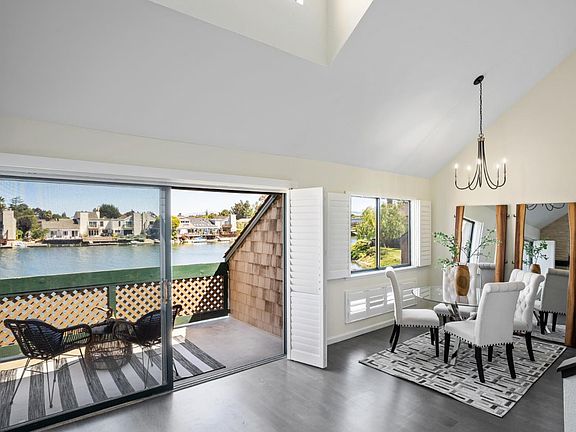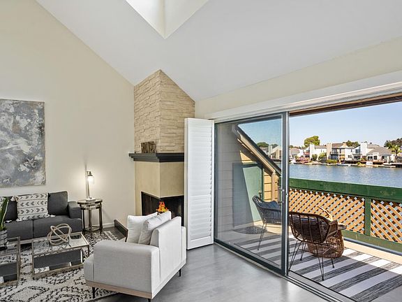 Beautifully designed condo with unobstructed 180-degree views of a scenic waterway in Redwood Shores. Inside, high vaulted ceilings create volume and large windows produce natural light. Refinished hardwood floors, new light fixtures, plantation shutters, and freshly painted white walls. The Living room has stone-finished corner fireplace and glass doors to deck for scenic natural views. Kitchen with granite counters and quality appliances. Stylish bathrooms with Italian tile, spacious 2nd bedroom, and a master suite with a private deck and very large wardrobe closet. Large upstairs loft, perfect family/media room, and separate space that could be used as a third bdrm. Open spacious living, outdoor Pelican Cove complex has two pools, hot tub, spa, clubhouse, and a boat dock. Mistral restaurant, parks, library, Nob Hill Foods nearby. Plus, tech-companies both nearby and reached from quick access to Highway 101. Dynamic location and serene living along the water a tremendous opportunity!