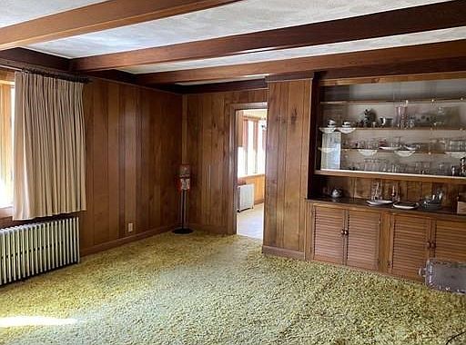 A DIAMOND IN THE ROUGH ON 1.5 ACRE WOODED LOT! DEAD-END STREET! Big kitchen with 2-year old SS appliances. Hard wood floors under carpeting. Two-car oversized garage with plenty of storage. Property has an apartment on the 2nd floor but could be converted to single family. Boiler 2010. Roof 2002. Sewer and gas on street. No FHA loans. Additional room on first floor (with closet) that could be used for a bedroom, office, etc.