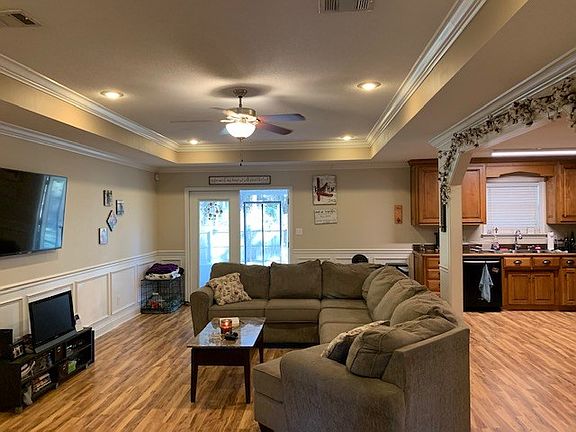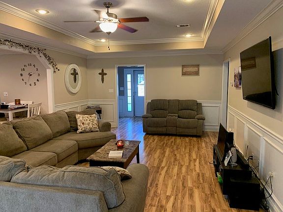 Located only 10 minutes north of Moody AFB in the Banks Lake Subdivision. This home has 4 bedrooms, 2 baths with the open floor plan that everyone is asking for and a large foyer to greet guests. You will love the extremely large Great Room with trey ceiling and crown molding. All laminate flooring, no carpet any where. This home also offers the split bedroom plan. Master bedroom has trey ceiling, crown molding with adjoining large master bath with double vanity and walk in closet. Enjoy evenings on your screen patio while the kids play in privacy fenced back yard. No homes behind you only woods that belong to you. Acreage for this property is 2.92. You are just down the street from the community pool and playground. You won't want to wait to see this home, so call today!