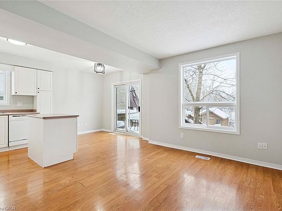 Move in ready and flooded with natural light, this beautifully maintained 3 bedroom, 2 bathroom single detached home is nestled in a quiet, family friendly neighbourhood and offers a warm, welcoming feel from the moment you arrive. The spacious living room features large windows, while the kitchen includes a breakfast bar, eat in dining area, and sliding doors leading to a deck and fully fenced, family sized backyard complete with a shed and stunning pond views with abundant wildlife. Enjoy convenient access from the garage into the home, three generous bedrooms upstairs, and a full bathroom. The fully finished basement offers a cozy rec room and a separate laundry room. Ideally located within walking distance to bus routes, Summerside Woods Park Natural Area, and Sandhills Public School, and just minutes to the Boardwalk Shopping Centre, both universities, Highway 7 and 8, and easy access to the 401, this home is a peaceful retreat with everyday conveniences close by and the perfect setting for morning coffee or summer barbecues.
