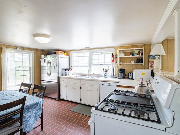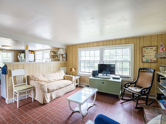 QUINTESSENTIAL CHAPPY COTTAGE - Enjoy direct access to Poucha Pond and water views from the deck. The location is simply magical - there is no better spot for swimming, fishing, kayaking, paddle boarding and star gazing! Being the last house before the famous Dike Bridge makes it an easy jaunt to East Beach and the beauty of the South Shore. Or take your SUV onto the beach and find a private spot along the ocean or Cape Poge Bay. You can even access Cape Poge Bay by boat from the Pond. There are 3 bedrooms and two full baths with water views from several rooms. A lovely fireplace provides a focal point in the living room and there is a half wall between the kitchen and living area, allowing a more open feel than one would expect with a house of this age. With two separate living areas (one up and one down), plus the large deck, there is ample room here for family and friends. Originally built as a camp in 1940 and then completed in 1991. A Title 5 septic system was installed in 1992. The Chappy Community Center is a wonderful gathering place and offers many programs for all ages and the Trustees of Reservations and Mytoi Gardens are both nearby for even more activities.