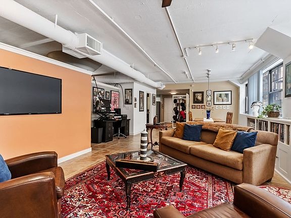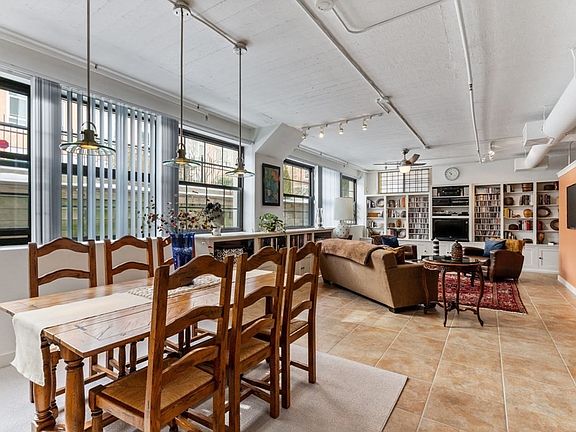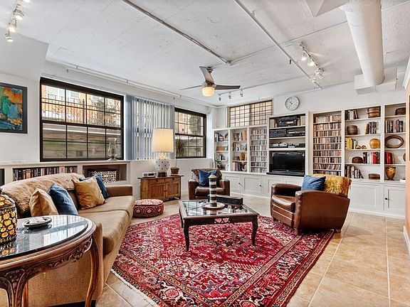 Dramatic loft-style home featuring high ceilings and oversized windows is filled with light. Wide open space offers park views, custom built-ins, unlimited design and decorating possibilities including space for home office. Newly remodeled kitchen with sparkling granite counters and stainless steel appliances. Renovated bath features walk-in shower, double granite vanity, radiant heated floors and linen closet. Custom California closets and tile floors throughout. Includes full size laundry, central air conditioning and gas heat. Step out to lovely common landscaped patio. Rental garage parking available nearby.