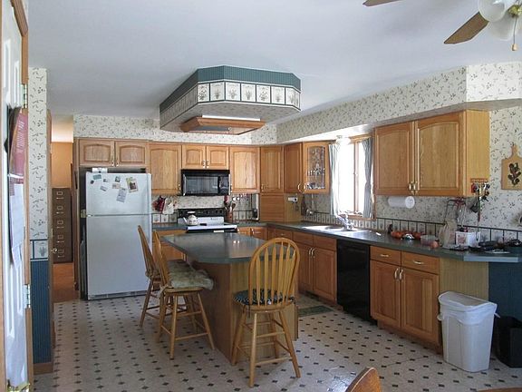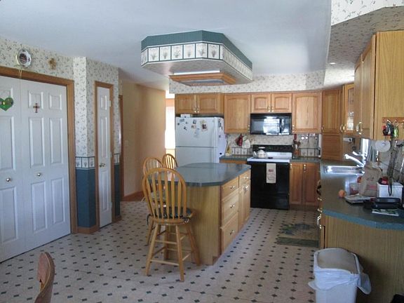 - Kit Dscrp: Flooring - Vinyl, Dining Area, Kitchen Island, Open Floor Plan, Country Kitchen