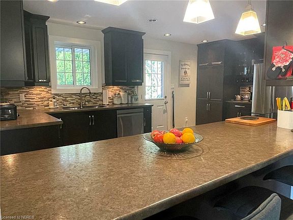 Location is perfect for this beautiful brick bungalow on city services sitting on a quiet dead end street in beautiful Callander. This house boasts pride of ownership throughout has been renovated from top to bottom inside and out featuring a large landscaped backyard with an updated in-ground gas heated swimming pool, stamped concrete decking, and a 5 person hot tub. This upper level has a spacious appointed kitchen with stainless steel appliances, open concept living room, a dining room with glass sliding doors that lead to a 3 season spacious sunroom over looking your private back yard oasis. Primary bedroom with 4 pc en-suite and a walk in closet, a second bedroom, and a 2 pc bathroom. The lower level has a family room, additional den, 3 pc bathroom, bedroom, spacious laundry room, an oversized utility room with an abundance of storage space, and lets not forget about that kitchenette being perfect for that Granny Suite potential. This landscaped lot is just under 1/2 acre plenty of yard to play, fire pits, amazing 3 door Barn shed, great pool shed, and a heated car garage with automatic door opener. Auto back up Generator, and invisible fencing is a bonus, and the extra large paved driveway has plenty of parking.. See attached documents for all upgrades done throughout this property.