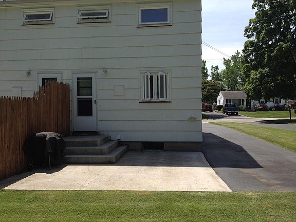 Duplex/half house, two story apartment with full basement and laundry hookup. Bedrooms and bath on 2nd floor. Kitchen and living room on first floor. Kitchen appliances included. Private patio and driveway. Quiet side street. Spencerport schools. No smoking or pets allowed. Contact landlord for more information. Month-to-month rental, landlord pays water, and maintains yard and landscaping. Tentant responsible for own snow removal and garbage pickup.