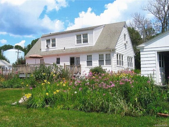 ADORABLE 1600 sq ft Cape, lovingly maintained by one family, in a great location on a quiet street close to the center of town. Sprawling layout boasts spacious kitchen with lots of cabinets and counter space, living room, family room, first floor bedroom and completely remodeled full bath with walk-in shower. Upstairs are two bedrooms including very roomy master suite with sitting room, and half bath. Hardwood flooring upstairs and down, is also under carpet in the living room. Lots of natural light streams in through windows overlooking BEAUTIFUL, level backyard bursting with color from perennial gardens, expansive deck, and 2-car detached garage. The furnace was replaced in 2002, and the bathroom remodeled in 2014.