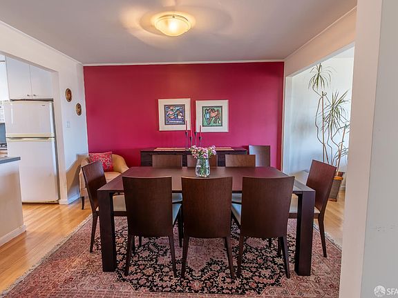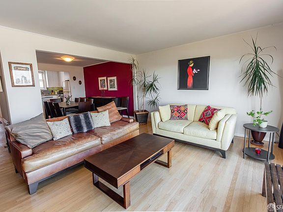 Beautiful and spacious, this mid-century one-bedroom, one-bath condominium is one of only four units in a quiet, well-maintained Anza Vista building. Enjoy spectacular panoramic downtown and city skyline views not only from the open living and dining area but also from the bright, open kitchen and even the bathroom. The living space flows seamlessly onto a private deckthe perfect spot to take in colorful sunrises, golden-hour light, or San Francisco's sparkling nighttime skyline. The home features gleaming hardwood floors, two generous walk-in closets, and an updated kitchen with quartz countertops, stainless steel gas range, dishwasher, and full-size refrigerator. The bathroom includes a classic cast-iron tub and shower combination, ideal for relaxing after a long day. Additional highlights include a private garage with deeded parking, easy street parking, bicycle storage, and a shared landscaped backyard garden. Ideally located near USF, Kaiser Permanente, Golden Gate Park, Laurel Village, NOPA, Trader Joe's, Target, and public transportation, this pristine residence at 64 Encanto Avenue is offered fully furnished on a one-year leasecombining comfort, convenience, and iconic San Francisco views in one truly special home.