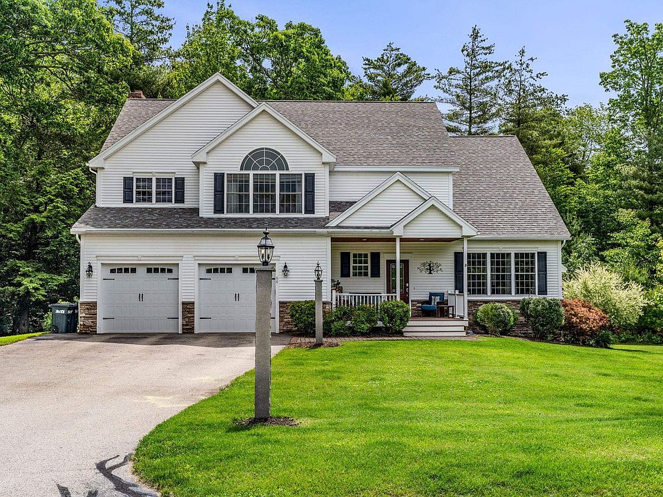 Exquisite Colonial privately situated on over 3 acres at the end of the culdesac in Merrimack's Premier neighborhood. This elegant styled home with detailed trim work is sure to impress. Spacious eat-in kitchen with 2 tiered center island open to the family room, both great places for every day gatherings. The formal dining room and living room with fireplace are a perfect place to entertain. Work from home in the first floor office. Room for all your storage needs in the oversized mudroom room. The second floor features a primary suite with large bathroom and walk in closet. Three additional bedrooms and 2 more baths complete the second floor. The lower level hosts a recreation room, gym, bathroom and additional bedroom. Enjoy the large flat yard with plenty of room to play or room to add a pool. Enjoy the fire pit underneath the gazebo or relax on the back porch with wood stove. This home has it all.