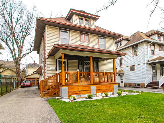 If you are looking for charm this 19th Ward colonial has it everywhere. You are greeted by gorgeous curb appeal and a huge front porch. A tile floor entryway opens into the large living room with new laminate flooring and original gumwood trim. Off the living room you will find a formal dining room with stunning coffered ceilings and a window seat, it is perfect for all your entertaining needs. The eat in kitchen offers light wood cabinets and a butler’s pantry for endless storage. Upstairs you will find 3 bedrooms and a full bath. A full attic is ready for you to add your final touches to be finished extra living space. Outside you will find a fully fenced backyard and a 2 car detached garage! New electrical panel in 2020, new furnace and central air in 2019, on demand hot water 2019. This is one you don’t want to miss. Delayed showings until 4/15 at 8am and delayed negotiations until 4/19 at 10am.