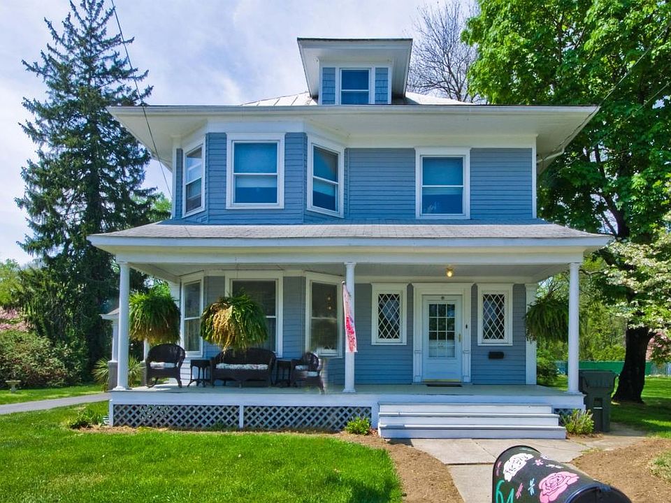 This home has a beautiful foyer spacious living room, parlor, huge dining room and 4+ bedrooms. Large deep lot that backs to Crosswicks Creek. The extra room currently being used as an office. So many unique characteristics like pocket doors, beautiful moldings, hardwood floors, Large bedrooms, back staircase, true butlers pantry, push button light switches, walk-up third floor and so much more. Huge detached barn/garage and a large yard with creek access. Some bedrooms need TLC. This is a must see.