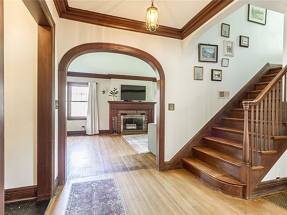 This gorgeous home has tons of character located within West Irondequoit Schools in a quiet neighborhood. Featuring 4 bedrooms & 2.5 bathrooms, this property offers ample space & comfort. The foyer guides you into the inviting large living room with tons of natural light. Original hardwoods complement the home throughout. The dining room features a recess, perfect for showing casing your buffet or decorative pieces. The dining room seamlessly transitions into the remodeled eat-in kitchen with quartz counter tops, new flooring, & appliances. On the second floor, there are three generous size bedrooms & a full bath. The primary bedroom has two separate closets, ensuring functional storage & space. A unique retreat can be accessed through the third bedroom, featuring a heated summer porch with tons of windows! The bathrooms preserve the 1930’s allure with classic fixtures & details! Ascend to the attic to the fourth bedroom, & full bathroom with a private oasis perfect for an office, reading area, or another bedroom. Outside, a two-car detached garage adds convenience with a partially fenced in yard. Furnace, AC, HW Heater & Kitchen new 2021! Offers due Monday (5/20) at 10AM