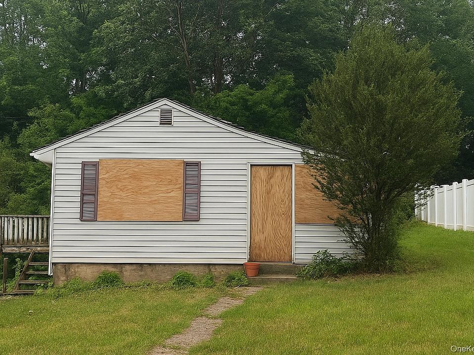 Two bedroom, one bathroom cottage in sought-after Floradan Estates! Great opportunity for weekender/summer property or nice place to live year round. Close to shopping, schools and amenities. Community owns 173 acres- including giant swimming pool, basketball court, hiking trails, playground, baseball field, tennis, and camp (discounted for residents). Sold as-is with no interior access - home is boarded due to condition. Buyer to pay NYS and any local transfer taxes. Cash offers with proof of funds. **Please see agent remarks for access, showing instructions and offer presentation remarks.**