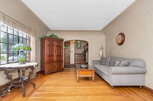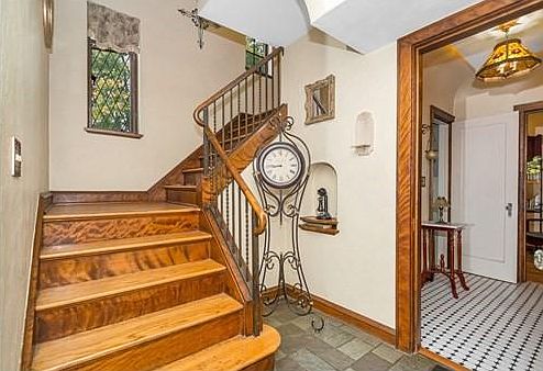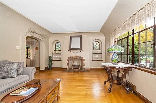 Welcome to this beautiful and rare Tudor Revival home located in highly desirable neighborhood. This charming home is truly one of a kind! The minute you walk in, you see the wonderful features such as tiled foyer, Moravian star light fixture, tray ceilings, rounded archways, brick fireplace, built in bookshelves and hardwood flooring throughout. First floor offers a flowing floor plan between the electric fireplace living and formal dining rooms, half bath and office/den/4th bedroom. Kitchen has granite counter tops and newer SS appliances. Dining room features two beautiful tiger wood built-in cabinets. Second floor offers 3 bedrooms, hall cedar closet, full bath, huge walk in closets and attic storage. Spacious FINISHED basement with bar. Enjoy mornings/evenings on year round covered brick patio. Detached garage, backyard, lots of annuals and fruit trees. Minutes to major highway/shopping/schools. Quick closing available. A must see!