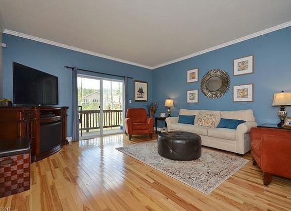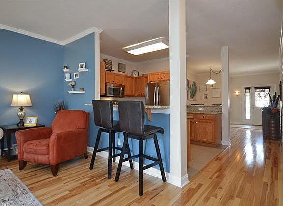 Largest available condo in Fox Glen, located in desirable end unit with private wooded view. Hickory floors on main level, granite counters, all new SS appliances, designer furniture vanities, open floor plan. Two covered decks with views. Community clubhouse, pool, fitness center, pets allowed. Won't last!