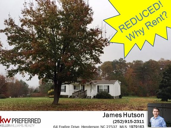 This 1200 square foot mobile / manufactured home has 3 bedrooms and 2.0 bathrooms. This home is located at 64 Foxfire Dr, Henderson, NC 27537.