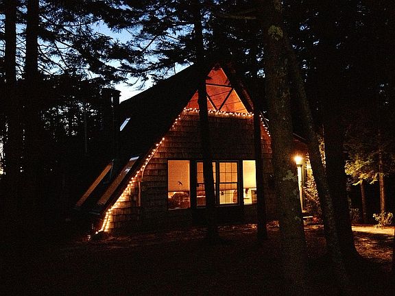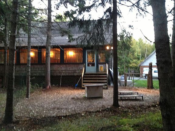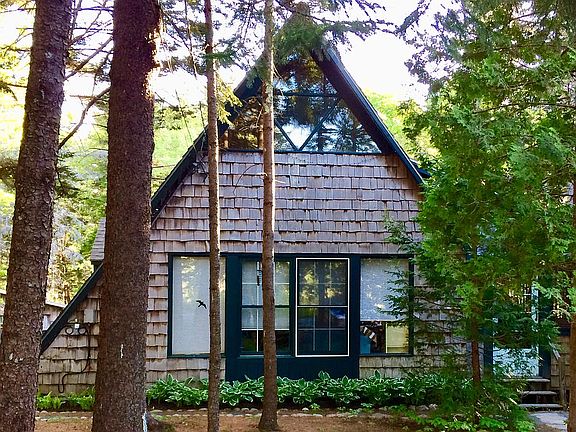 Modified A frame style chalet located near the end of a quiet, dead end road. Spacious yard, paved driveway, fenced in dog yard located on 1.42 +/- acres of land. Home offers enclosed, three season porch, dining area, kitchen, living room, primary bedroom, second bedroom, full bath and expansive loft on the second floor. Full basement. Two + car detached garage. Close to Acadia National Park. New appliances. New kitchen flooring. New metal roof. New AC/Heat pumps. New furnace. Wood stove and FHA oil heat. New leach field. New oil tank.