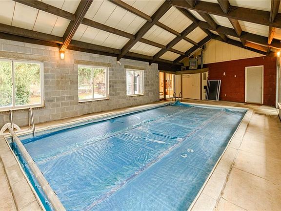 Enjoy Year Round Swimming with this Indoor Heated Inground 16x32 swimming pool in a 1400 sqft heated room. Come see this spacious home and make it yours. Plenty of counter/cabinet space in the kitchen w/ Corian counters. Hardwoods in many rooms. Relax by the gas fireplace, or the 4 season heated sunroom that leads to the pool. Large outside deck near the pool. The yard is fully fenced and private. Possible 4th bedroom/in law on the first floor with a sliding door leading to another deck. The roof is about 10 years old.