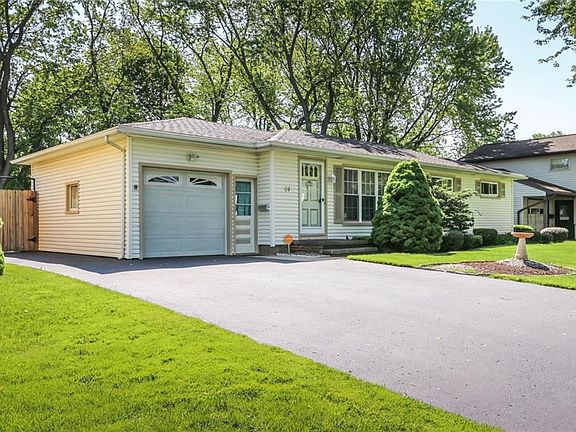Welcome home to this fantastic 3 bedroom, 1.5 bathroom Ranch in Irondequoit. Cozy up in the spacious living room with large windows and plenty of natural light. Great entertaining space as the dining area opens to the living room & flows to the updated kitchen. Beautiful modern floors, white cabinets, granite counters, stainless steel appliances & updated backsplash; this kitchen is gorgeous! Spacious full bathroom with updated floors & vanity & great sized bedrooms. Fantastic basement rec space with built-in bar, extra work room & bathroom! You'll love to entertain this summer with this perfect backyard set up. Fully fenced yard private yard with a huge deck & patio area and tons of space! Hardwoods under the carpet is an added bonus! This beautifully maintained home can be yours today!