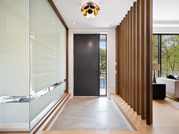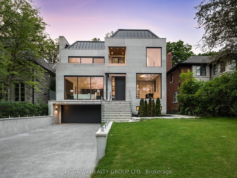 Welcome to this exquisite custom-built 4+2 Bedrm 6 Bathrm home, perfectly situated in the heart of Lawrence Park. Soaring 10ft ceilings, sleek pot lights, and White Oak hardwood flrs throughout. Open Concept living and dining rm creates a spacious environment ideal for entertaining with natural light through the floor to ceiling windows. Living rm boasts a gas fireplace. Dining rm features a wine cellar. Main flr office, complete with smart frosting film on glass offers option for privacy. Grand foyer showcases a walk-in closet with sliding doors, powder rm impresses with designer sink and heated floors. Mudroom off of side entrance with custom closets and bench. Gourmet kitchen is a chefs dream, with built-in Miele appliances, refrigerator, freezer, 6-burner gas range, coffee system, transitional speed oven, and dishwasher. Custom-built center island adorned with luxurious quartzite countertops. Open-concept family room, featuring another fireplace with walk out to deck. Natural light floods the contemporary staircase with skylights overhead. Primary suite offers a serene retreat, complete with a 6-piece ensuite, walk-in closet, gas fireplace, bar with beverage cooler, and speaker system, all overlooking the tranquil backyard. 2nd Bedroom with 4pc ensuite features custom built in closets. 4pc ensuite has caesar stone counter top, tub and heated floors. 3rd & 4th Bedrms offer south facing large windows with shared 3pc ensuite with Custom Vanity w/ Caesar stone Countertop, heated flrs, shower. Mezzanine office with gas fireplace. Lower level offers an expansive rec room, two additional bedrooms (ideal for a gym), 2 3pc bathrms, laundry, and a home theatre. Federal Elevator system. iPort Home Automation System. Hot Tub & Pool. Heated Driveway & Stairs, Front Porch, Rear Deck & Rear Stairs. Camera Security System. Double Car Garage. Sprinkler System. Concrete Deck w/Glass Railing