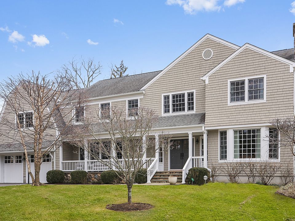 Dramatic 5 bedroom/5.2 bathroom sun-filled classic Center Hall Colonial ideally located in the Greenacres estate area near George Field Park. Special features: front porch, 9' ceilings on 1st/2nd floors, double door entrance, California custom closets, whole house generator, office with coffered ceiling, custom built-ins and 2 sets of French doors, wainscoting in hallways, Cook's kitchen with large dining area with bay window that leads to mud room with bead board and door to rear private bluestone patio, 2nd floor cozy upstairs family room. Square footage includes fabulous lower level family room with custom cabinetry and mirrored exercise room. One of a kind - simply gorgeous!