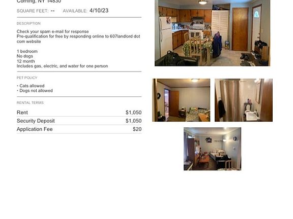 This 600 square foot apartment home has 1 bedrooms and 1.0 bathrooms. This home is located at 64 Griffith St #101, Corning, NY 14830.