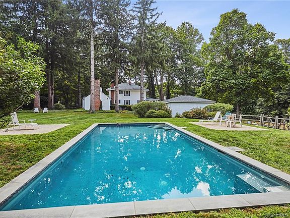 Charming Antique colonial home on beautiful level property with towering trees and a heated Gunite pool in South Wilton! This home offers old world charm - and is so close to Wilton & Westport centers, main commuting roads and the Metro North train. Special features of the home include a lovely all season sun room that leads out to a blue stone patio, 2 fireplaces, hardwood floors in most rooms, wood ceiling beams, cedar closets, first floor office/mudroom and a full bathroom just off back entrance - perfect for showering off after your daily lap swim! Recently renovated kitchen with new granite counter tops, new stainless sink/faucet, freshly painted walls with adorable breakfast nook. The vaulted ceiling main bedroom is on the first floor offering separate entrance, over sized cedar walk-in closet and full bath/shower. The current 1st floor bedroom was once used as the Family Room, but this Owner is enjoying this impressive room as the main bedroom. There are 3 bedrooms on the 2nd floor with lots of nooks and crannies, and spacious closets in each room. Unfinished lower level adds plenty of storage space, as does the 2 car detached garage. New 50 gallon hot water heater. CITY WATER too! Come see this beauty!