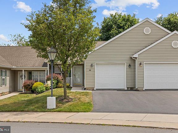 Carefree living in this immaculate 2 BR & 3 FB with 1 car garage condominium in the Shiloh Ridge 55+ Community in West York, York County. The picturesque front porch, back concrete patio and the approx. 12’ x 12’ elevated deck will provide plenty of outdoor enjoyment especially since the deck adjoins the 2nd bedroom via a glass panel double door for a tree lined view. The spacious kitchen has recessed lighting, crown molding, breakfast bar, vinyl floor, a gas range, microwave, refrigerator, dishwasher and garbage disposal. The LR/DR combo is set off with handsome engineered hardwood flooring, crown molding and a large window that provides lots of natural light. The 2 full baths on the main floor (attached primary bedroom bath has a large step in shower & the 2nd bedroom bath has a generous tub shower along with laundry area). The attractive 3rd full bath with ceramic tile in the lower level offers lots of convenience. Each bedroom has ample double door closet space with shelving and ceiling fans. The primary bedroom has carpet, and the 2nd bedroom has engineered hardwood flooring and offers the flexibility to be used as a study/office. The lower level is well lite by a large window and the glass panel double door with sliding screen provides a walkout to a approx. 10’x 12’ concrete patio with hose bibb. It would be very easy to add an additional bedroom or family room to the lower level as suitable electric service is already in place. The additional back storage room is ideal for items used seasonally and has a laundry sink. The attic on the main level has a pulldown stair which provides even more opportunity for storage. Both dryer and stove are gas, but electric is accessible to modify these appliances over to electric if desired. Overflow parking is less than 40’ away and a Community Building that can be rented for personal or private events is available. Convenience awaits as this community is very close by to major retail shopping; West Manchester Town Center and Delco Plaza to name few. Cousler Park, a 106-acre park with various walking trails, baseball/softball, soccer fields, playground structures, tennis and basketball courts, sand volleyball, pavilions, pond and activities is also nearby. Easy access to Rt.30 & Rt. 74.