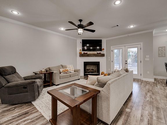 This Fabulous Family Home is nestled on .99 acre! Greeted by a beautiful front door, Step inside to discover a well designed floor plan that seamlessly combines comfort and functionality. This Open floor plan provides a cozy corner gas log fireplace in the living room area. The well-appointed kitchen boasts of large island, large pantry and convenient layout that makes meal preparation a joy! This home offers 4 bedrooms with a large master bath including a soaking tub, double vanities, & two walk-in closets. The home offers an abundance of storage In addition to its charming interior, this home has two covered porches with wood stained ceilings, large fenced back yard & side-entry garage.