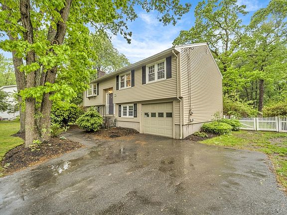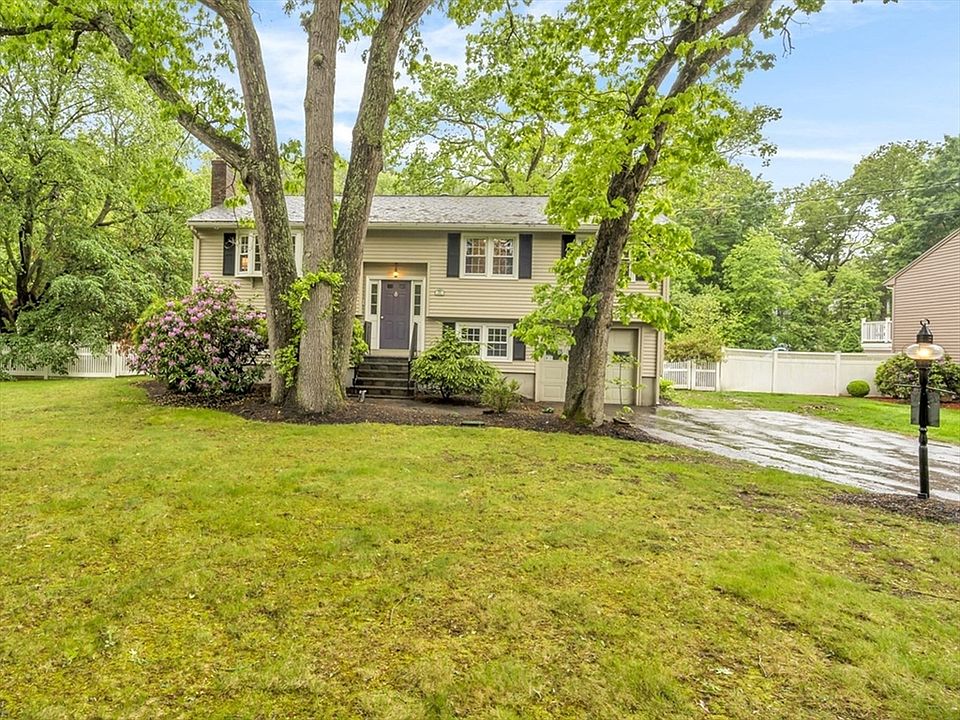 Commuters dream! 1/2 mile to the Rte. 95 Rotary. Easy access to downtown or drive into Boston. This pristine home has only had one owner. Walk into the foyer and enter the fire-placed living room with gorgeous bow window. Adjacent to the dining room and spacious kitchen. There is a walk-out to the 3 season screened in porch where you can overlook the expansive flat back-yard. Continuing inside you will find 3 bedrooms and the full updated bathroom. All of the main rooms have hardwood floors. The lower level has a 2nd fireplace in the family room/office space. There is a slider to the backyard. Basement is finished off with a half bathroom, workshop/office area and laundry room. Heating and instant hot water system is brand new! 1 stall garage with workbench. There is an additional small lot of land that is included with the sale that abuts the end of the backyard. A/C on main living area. Irrigation system. A few updates will go a long way in a very desirable town.