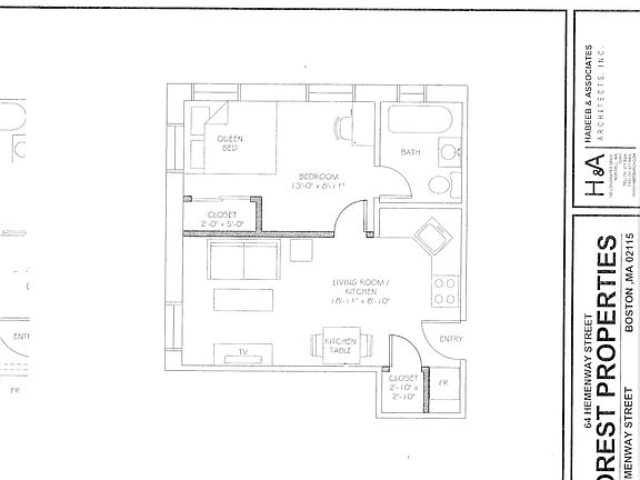 Available 8/01 Cozy 1 bed located on the Back Bay side of Hemenway Rent includes gas,heat,hot water Pet Friendly Laundry in building